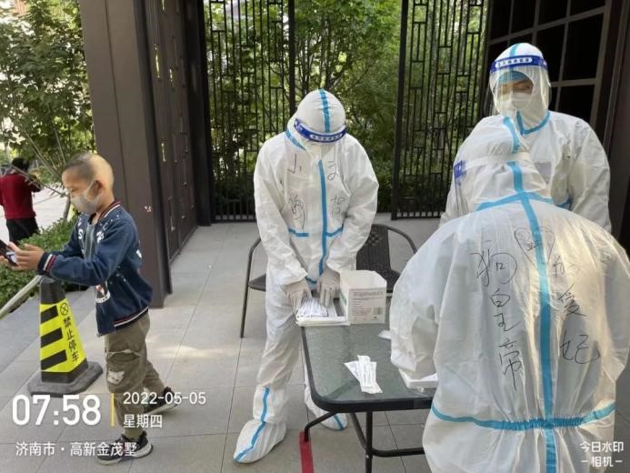 由于一直在高溫下“全副武裝”,志愿者的防護(hù)服早已被汗水浸濕,手掌被泡得發(fā)白,臉上也被口罩勒出了痕跡,更有志愿者出現(xiàn)了頭暈、流鼻血等中暑癥狀。盡管如此,他們也是稍加休整,便再次沖鋒向前。休息時(shí)間,志愿者們席地而坐,匆匆吃完奔赴崗位,因忙碌而錯(cuò)過飯點(diǎn)更是常事,然而他們卻從未有過怨言;腰肌勞損、椎間盤不好的團(tuán)隊(duì)干部即使腰疼的直不起來,也依舊抵擋不住他助力抗疫的熱情與行動(dòng)。……小鴨志愿者尋魯川在協(xié)助核酸檢測時(shí),有一個(gè)小男孩很不配合,由于當(dāng)天的核酸檢測并沒有貼紙,男孩媽媽便偷偷準(zhǔn)備了小貼畫,拜托尋魯川給小朋友貼上。尋魯川很感動(dòng),并且樂意幫忙,尋魯川說:“他兩只大眼睛直勾勾的盯著貼紙看,特別萌,心都被萌化了,真是開心了一整天,所有的疲憊都一掃而空?!?nbsp;…… 在抗“疫”前線,小鴨人和社區(qū)居民們互相理解,互相配合,如此令人感動(dòng)又暖心的事跡不勝枚舉。